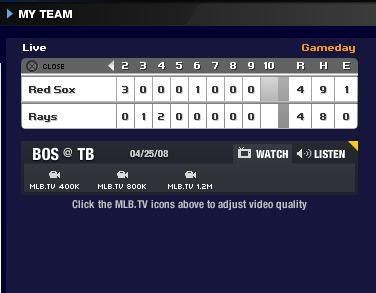 I missed the whole series against Baltimore. You know, the one where Tek hit a couple of homers and real nifty double? Uh-huh, that one. I was blacked out. Before you begin to wonder about just how much beer I was enjoying, let me be clear. MLB.COM blacked me out. Why? Because I live close enough to Baltimore to purchase a ticket and put my fanny in a seat. I went to Map quest and fed it the start and end info, this is what it spit out: Estimated Time: 8.0 hours 15 minutes Estimated Distance: 488.87 miles. I currently reside in North {Sweet} Carolina {Ba-Ba-Ba} tho, not by choice*. In fact, I live close enough to South Carolina, I could spit at it, and sometimes do. So, counting NC, Va, and driving through {i.e. all the way around!} D.C. Camden Yards is like 3 States away! 8 hours and 15 minutes, does not include, potty and fuel stops, food stops, detours, road {de}construction and all the the other crap that goes with 8 hour car trips. What it also does not take into consideration is THE TRIP BACK! THE TIME IT TAKES TO PLAY THE GAME AND THE FACT THAT I WILL HAVE TO DO IT 3 DAYS IN A ROW!!! I pay for Internet service, I pay to "watch every game, every day, everywhere" {that's what they say} in fine print it says "subject to black out". I understand that there is money to be made by having fans come out to the park. I understand that stations like FOX and ESPN want exclusivity rights to broadcast games. I'm OK with that. I'm not OK with being blacked out of nearly every game played on the East Coast. Oh yeah, you read that right. The teams I am blacked out for: Baltimore, Cincinnati, Washington DC and Atlanta. That is nearly every team on the Eastern Seaboard. The good news is, all of them but Baltimore are National League and they don't count until October. Here is how it works. MLB.TV takes my money and I get to watch my beloved Red Sox games on a small computer screen. Sometimes, the games are on ESPN, Fox or one of the Big 3 Networks. That is a BONUS! Yeah!! Sox on the big screen! Never mind the irony**
